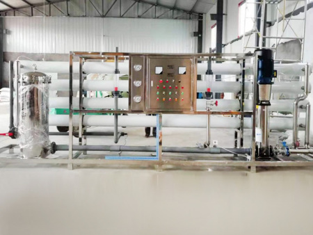 反渗透技术原理是在高于溶液渗透压的作用下,依据其它物质不能透过半透膜而将这些物质分离出来,是以膜两侧压力差为动力的膜分离技术。当系统所加的压力大于溶液的渗透压时,水分子会不断地透过膜迁移至膜的淡水侧,并通过收集管流至淡水出口。本设备选用复合反渗透膜,能连续去除水中绝大部分无机物和有机物,从而达到净化的目的。