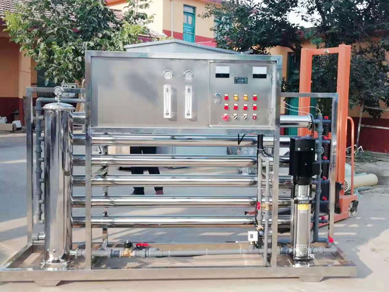 反渗透技术原理是在高于溶液渗透压的作用下,依据其它物质不能透过半透膜而将这些物质分离出来,是以膜两侧压力差为动力的膜分离技术。当系统所加的压力大于溶液的渗透压时,水分子会不断地透过膜迁移至膜的淡水侧,并通过收集管流至淡水出口。本设备选用复合反渗透膜,能连续去除水中绝大部分无机物和有机物,从而达到净化的目的。